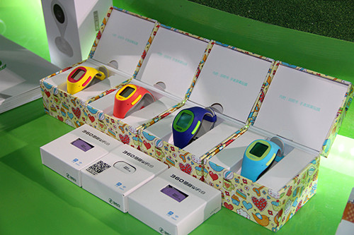 在360公司的展区,几款糖果色的儿童手表受到了不少观众的注意。它是一款儿童定位手表,内置SIM卡,每隔5分钟定位一次。戴在孩子手腕上,父母在手机上绑定配套的客户端,就能随时随地知道孩子在哪儿。还能一键报警,通过手机控制手表实时录音。