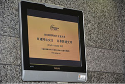 某大厦楼宇电视正在播放首届国家网络安全宣传周广告