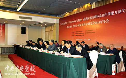 在开幕式上,中共青岛市委常委组织部长、统战部长边祥慧,中国海洋大学党委书记孙也刚分别代表青岛市委和中国海洋大学发表热情洋溢的欢迎辞。国防大学原副校长、中国领导科学研究会常务副会长许志功作了十八届四中全会的辅导报告。