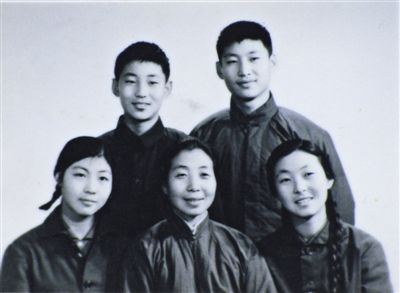1972年冬,齐心获准带着儿女看望监护中的习仲勋。为了这次相见,齐心和子女专程从外地赶回北京,并拍摄了这张照片。前排右起:齐桥桥、齐心、习安安。后排右起:习近平、习远平。