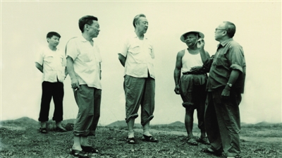 1978年8月,习仲勋(左三)在广东惠阳农村调研。在清华大学读书的习近平(左一)利用暑假时间参加社会实践,随同父亲一起下乡。本版图片均由人民出版社提供