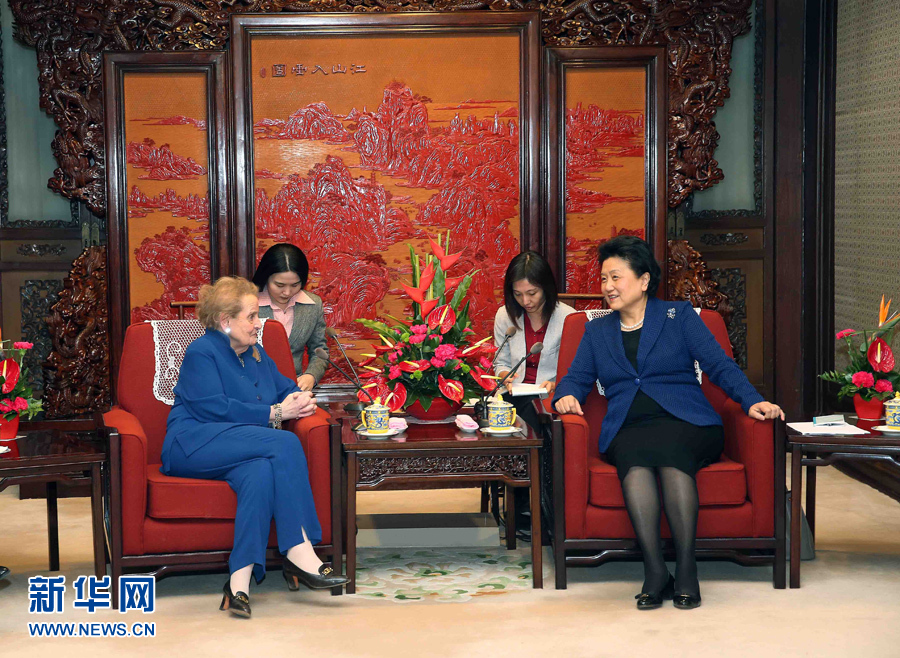 12月17日,中国国务院副总理刘延东在北京中南海紫光阁会见美国前国务卿马德琳·奥尔布赖特一行。 新华社记者刘卫兵摄