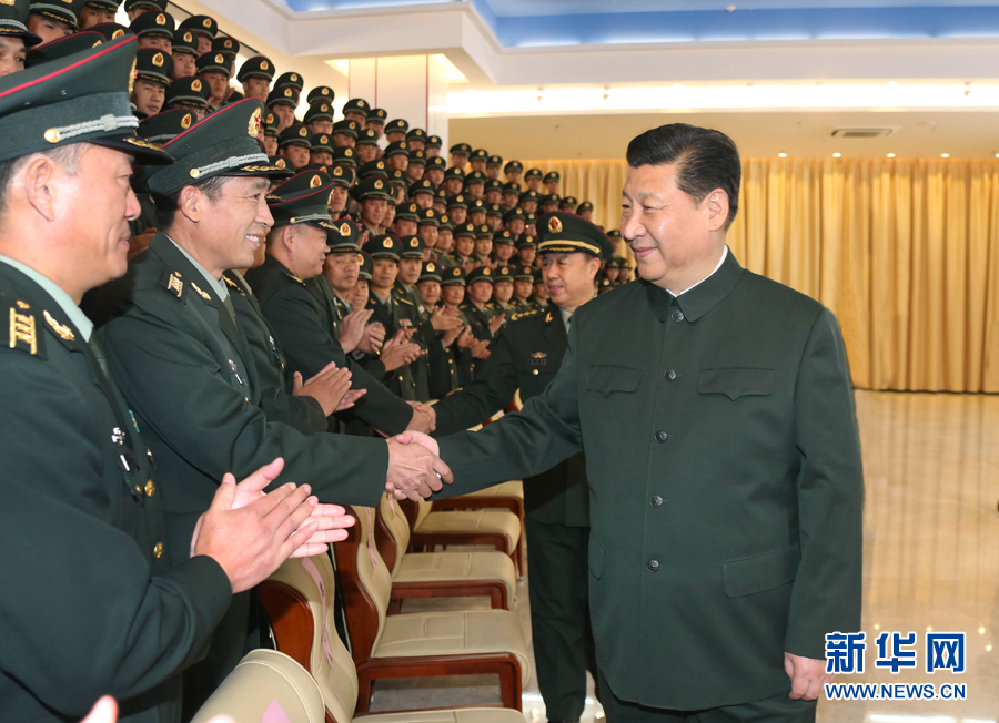 12月20日,中共中央总书记、国家主席、中央军委主席习近平视察中国人民解放军驻澳门部队。这是习近平亲切接见驻澳门部队全体干部。新华社记者李刚摄
