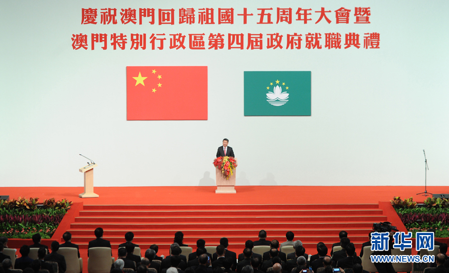 习近平出席庆祝澳门回归祖国15周年大会暨澳门特别行政区第四届政府就职典礼