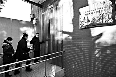 位于北京市西城区永定门内西街甲2号建筑门前,一块印有“来访接待大厅”字样的牌匾十分引人注目,中央纪委信访室就设在这里。北京青年报记者获悉,在党的纪律检查机关和政府监察机关合署办公的形式下,信访室也实行一身二任,这个可容纳数百名来访群众的接待大厅同时也是监察机关的举报中心。