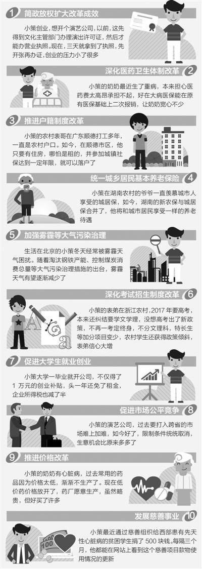 编者按:2013年,十八届三中全会就全面深化改革作出战略部署。2014年,国务院及其各部门在稳增长、调结构、促改革、惠民生等方面出台了一系列重要改革举措。这些改革举措中,哪十项最受网友欢迎?日前,中国政府网微博推出“网友最关心的国务院2014年十大政策”评选投票。1月3日投票结果正式揭晓,本版梳理了这十大政策的亮点。