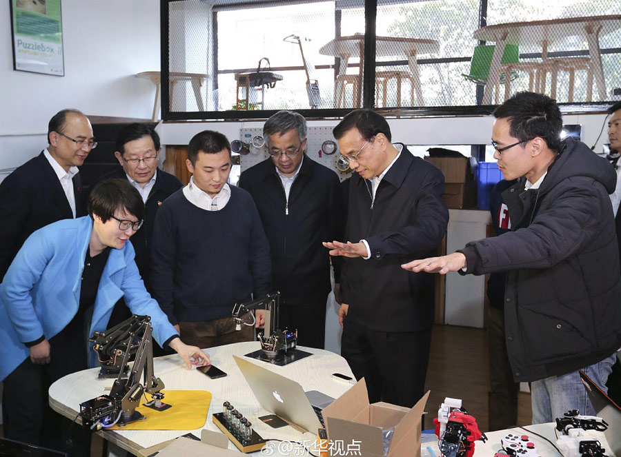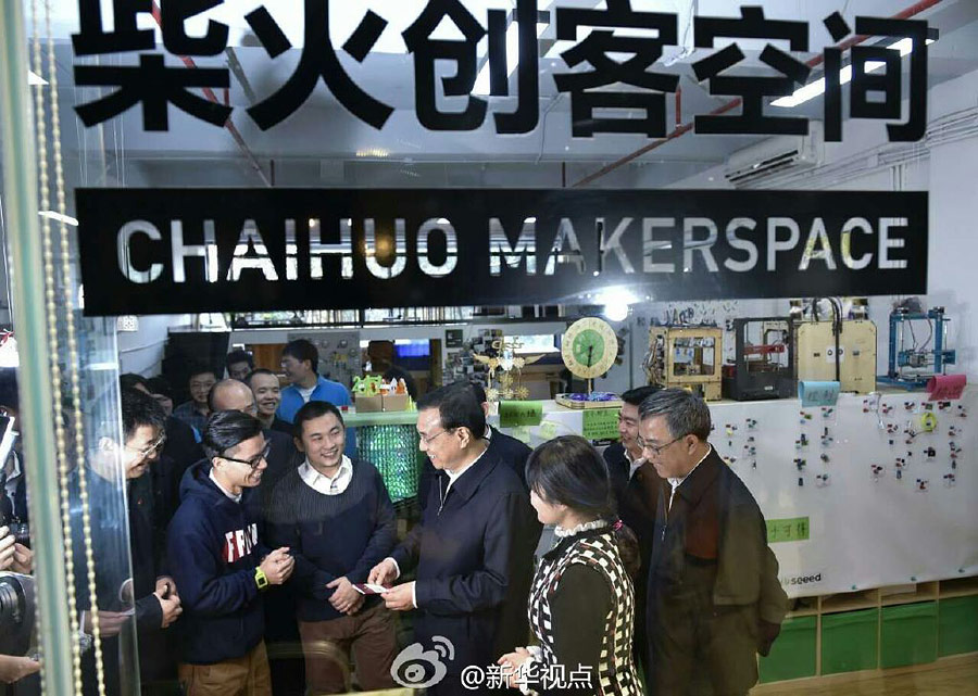 李克强总理4日考察深圳柴火创客空间。“创客”概念源自国外,意指将与众不同的想法变成实物的人。空间创始人说,柴火寓意“众人拾柴火焰高”,成立4年已经吸引1万多人参加活动。他希望总理能成为柴火创客的荣誉会员,李克强欣然应答:“好,我再为你们添把柴!”