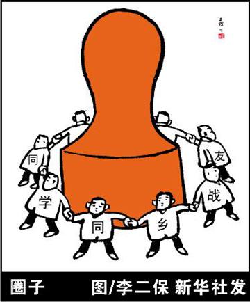 有人说,现在干啥都讲究圈子。你看,娱乐界有娱乐圈,学术界有学术圈,商界有商圈。其实,正常的圈子交往无可厚非。问题是,一旦形成一种拉帮结派的“圈子文化”,就变味了。
