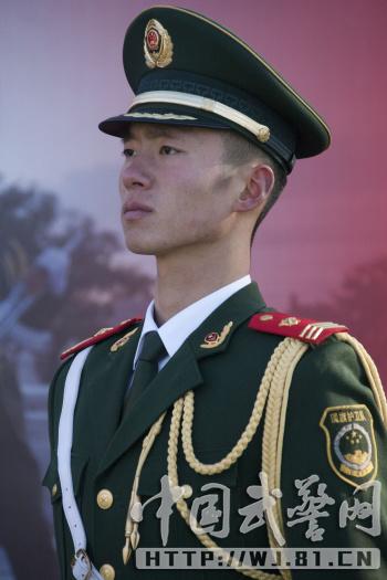 身高1.86的魏凯,在升降旗方队中担任左护旗手。说起成为护旗手的经历,魏凯显得十分激动,他说:“成为护旗手是我从新兵时的一个梦!”原来新兵训练时,一次偶然的机会,魏凯见到一支与众不同的枪,爱不释手。询问后得知,这支枪是担负护旗任务的专用枪,于是“成为一名护旗手”的念头在魏凯的心里生了根。新兵下连后,魏凯如愿分到了国旗护卫队。一天,爷爷从老家来看他,想要同当时的三位旗手合影,却没能如愿,这件事更加坚定了魏凯成为一名护旗手的决心,他想:等我当上旗手,一定要让爷爷照个够。为了重拾心中的那杆枪,魏凯训练十分刻苦。每天白天跟着大家一起练习队列,晚上熄灯后又缠着班长扣护旗手的单人动作,一练就是3、4个小时。魏凯从不偷懒,即便班长休假,也会自己跑去练习,训练场上,你总能看见他绑着7斤重的沙袋跑步热身、拔军姿、练摆臂、踢正步的身影。问他苦不苦?已担任护旗手第三年的魏凯说:“为了梦想,再苦再累都值得!”