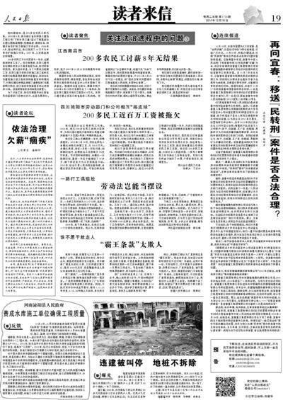去年12月2日,人民日报读者来信版以《河南泌阳县寺沟水库除险加固成摆设 “豆腐渣”水库致民居成险房》为题刊登了我们的来信,反映河南泌阳县寺沟水库除险加固工程存在裂缝、渗水等工程质量问题,致使部分民居成险房。