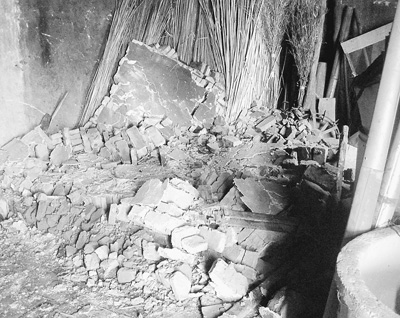 去年12月12日晚突然倒塌的杨相燕东屋南界墙现场。杨相燕摄