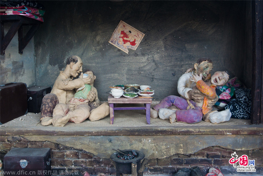 2015年1月5日,长春,刘老根大舞台旗舰店,全国最大的二人转剧场。剧场两侧砌起了一溜橱窗,橱窗内摆放着各式各样厚嘴唇、双眼皮、动作夸张的东北民俗泥人,其中不乏袒胸露乳、衣着甚少的人物泥塑,令人看了不禁脸红。
