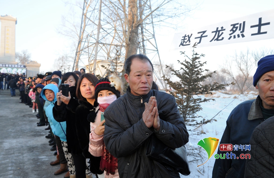2015年01月08日,吉林省长春市,赵子龙烈士的骨灰被送回家乡,安葬在榆树市烈士陵园。