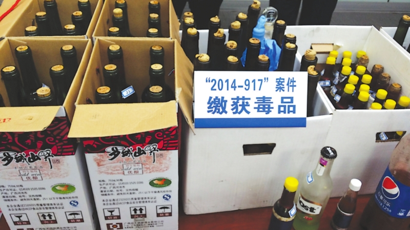 现场,警方又发现了120瓶大小“红酒”,与刚查获包裹里的那一瓶红酒高度相似。联想到在高速公路出口查获的与冰毒同包装的一小瓶“红酒”,侦查员们立刻封锁现场,固定证据,经现场测算,“红酒”计量超过了四十公斤。
