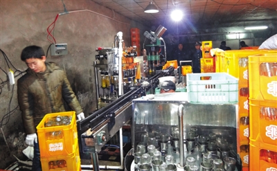 北冰洋汽水生产方北京一轻食品集团有限公司人士介绍,仅从玻璃瓶看,厂家回收主要从环保方面考虑,再次使用的正规流程包括人工分拣、挑选、清洗、消毒、过滤等,要做到一尘不染,成本也因此增加不少。而根据查处情况,这家“黑工厂”的工人对回收来的玻璃瓶,只是用毛刷刷一下,自来水冲一下即重新灌装,“没有任何的消毒灭菌设备,工人也没有任何防护设备和健康证明”。