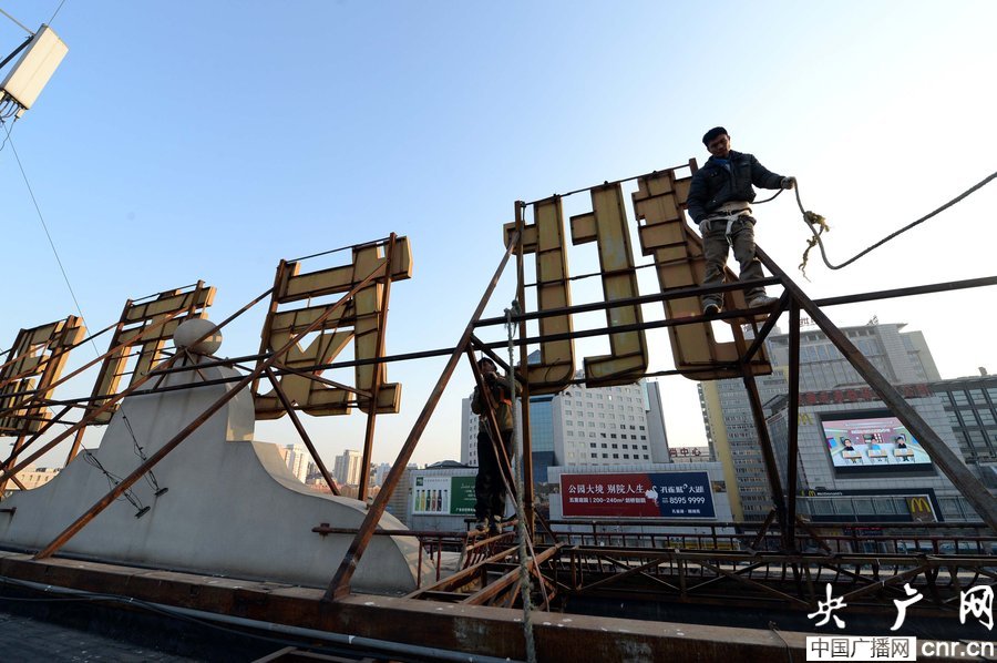 2015年1月11日,北京,动物园天皓成服装批发市场等8个服装批发市场开始摘除广告牌,这8个市场将正式关门撤离。