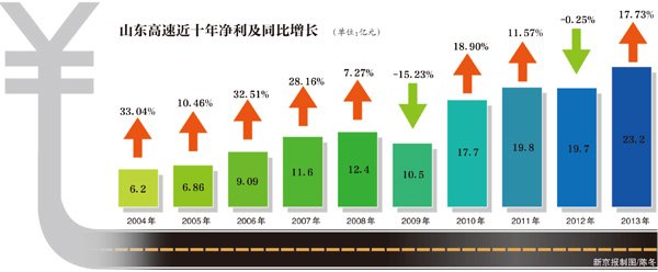 在资本市场上,山东高速确实可以称作“重视股东利益”的楷模。2011年至2013年间,山东高速连续“出手大方”,进行派息。据统计,3年内,山东高速共分红20.78亿元。