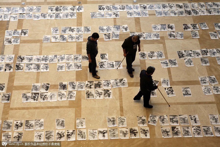 2015年1月12日,西安,陕西省2015年普通高校艺术类招生美术专业阅卷工作在陕西宾馆陕西大会堂进行,阅卷现场,一幅幅考试画卷铺满了大厅,评委老师手拿长棍在画面上指指点点,认真判卷。当日,陕西省招生办首次向媒体公开了以往神秘的美术专业阅卷过程。