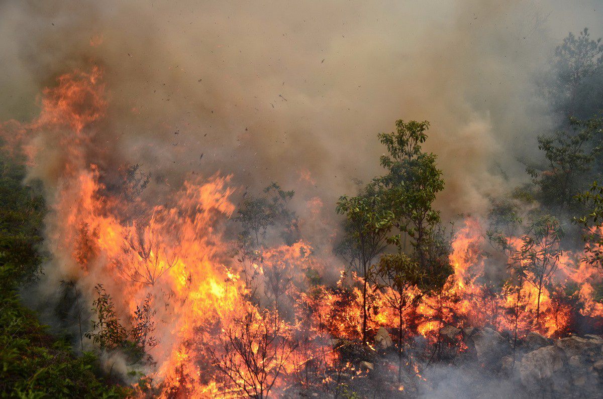 2015年1月12日,浙江温岭多处山头失火,由于天干物燥杂木众多,加上风助火势,山火带绵延上千米山头,温岭森林消防调派了辖区上百名森林消防员前往进行扑救,预防火势蔓延到山脚下民居。CFP