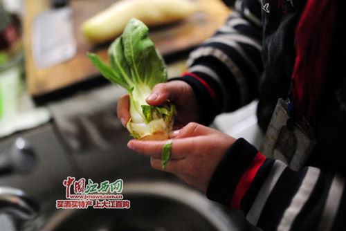 9日下午5点左右,小熠放学回家,此时家里来了不少人,有媒体记者、当地志愿者以及闻讯而来的热心市民。众人面前,小熠有些腼腆,他为客人们一一倒茶,然后穿上围兜,进厨房准备晚餐。来客们在门口围成一圈,好奇地看稚嫩的小手熟练地淘米、切菜、炒菜。