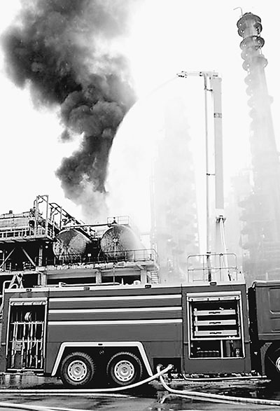 2014年8月4日,兰州石化气体分馏装置泄漏着火。记者 曹树林摄