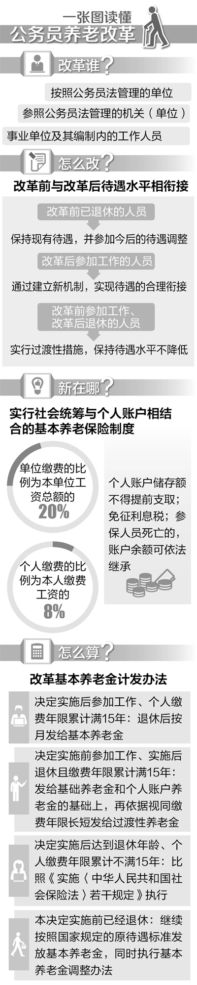 日前,国务院发布《关于机关事业单位工作人员养老保险制度改革的决定》,破除养老保险“双轨制”迈出关键一步。《决定》的出台背景是什么?会带来哪些变化?1月14日,记者采访了人力资源和社会保障部有关负责人。