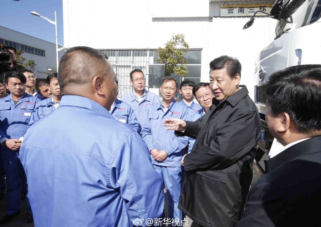 习近平来到白族企业家马伟亮创办的力帆骏马车辆有限公司。看到企业短短10多年里就能生产多种载货汽车,正在研发电动汽车,产品畅销东南亚。他说,汽车市场竞争激烈,希望下一步不断创新,通过创新赢得市场、赢得发展。