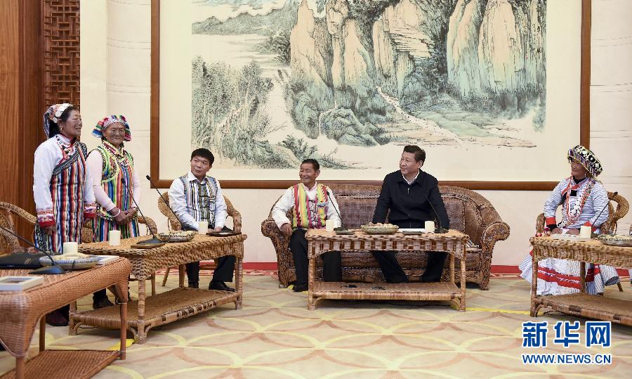 1月19日至21日,中共中央总书记、国家主席、中央军委主席习近平来到云南昭通、大理、昆明等地,看望鲁甸地震灾区干部群众,深入企业、工地、乡村考察,就灾后恢复重建和经济社会发展情况进行调研。这是1月20日,习近平在仔细倾听两位独龙族妇女唱的民族特色歌曲。 新华社记者 张铎 摄
