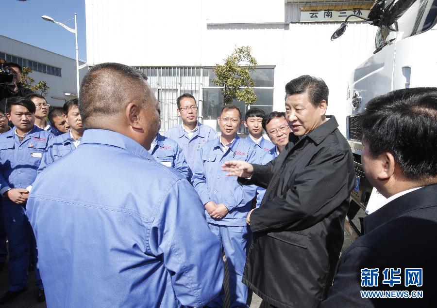 1月19日至21日,中共中央总书记、国家主席、中央军委主席习近平来到云南昭通、大理、昆明等地,看望鲁甸地震灾区干部群众,深入企业、工地、乡村考察,就灾后恢复重建和经济社会发展情况进行调研。这是1月20日,习近平来到大理国家级经济技术开发区力帆骏马车辆有限公司,了解企业发展状况。 新华社记者 鞠鹏 摄