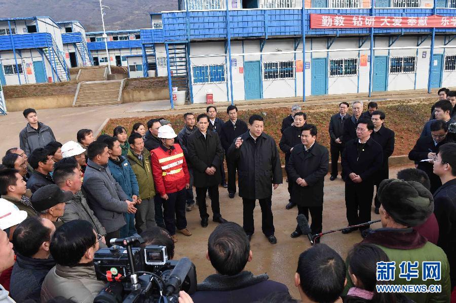 1月19日至21日,中共中央总书记、国家主席、中央军委主席习近平来到云南昭通、大理、昆明等地,看望鲁甸地震灾区干部群众,深入企业、工地、乡村考察,就灾后恢复重建和经济社会发展情况进行调研。这是1月19日,习近平在鲁甸县龙头山镇板房学校,看望慰问受灾群众代表和抗震救灾先进工作者代表。 新华社记者 张铎 摄