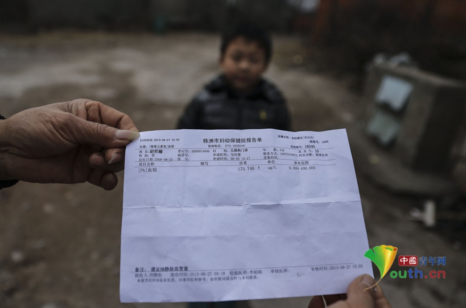 一名血铅超标的儿童,据社区干部介绍该村儿童血铅超标率几乎是百分之百。