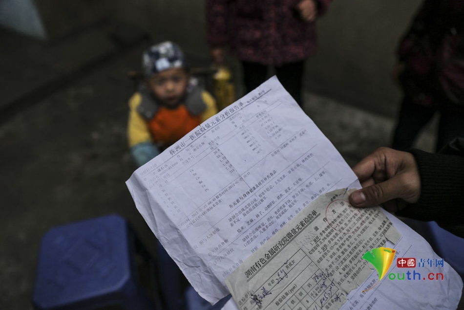 一名血铅超标的儿童,据社区干部介绍该村儿童血铅超标率几乎是百分之百。