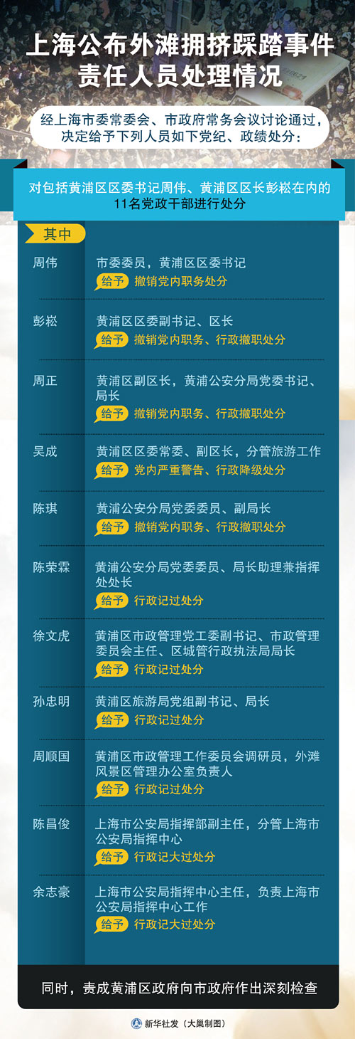 “部分官员在敏感时间肆意妄为,对中央八项规定置若罔闻,属于顶风作案,应当受到党纪严肃处理。”中央党校教授辛评说。同时,1月21日公布的外滩踩踏拥挤事件调查报告也认定,“黄浦区政府对事件发生负有主要管理责任”。