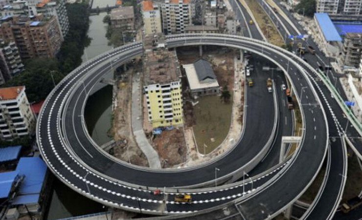 2015年1月18日,广州洲头咀隧道正式通车,两栋楼房被洪德立交圈在其中,形成“圈中楼”。据相关部门称,楼房内有3家钉子户仍在坚守。洲头咀隧道中还暗藏一条已经建好、目前未使用的隧道。