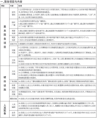 《意见》还以附件形式一并下发了《国家基本公共文化服务指导标准(2015-2020年)》。《标准》对服务进行量化,以群众实际文化需求为导向,界定了基本公共文化服务的保障范围,主要围绕读书看报、收听广播、观看电视、观赏电影、观看演出、参加文体活动和免费使用公共文化设施等群众基本文化权益,提出了具体的项目、内容和指导标准,明确了服务范围、程度和质量要求。同时,对公共文化服务硬件设施和人员配备提出了相应标准,为各地加快构建现代公共文化体系提供指导和遵循。比如,每学期要给中小学提供2部爱国主义教育影片;为农村群众提供电影放映服务,要保证三分之一的片子是国产片,且上映时间不能超过2年。