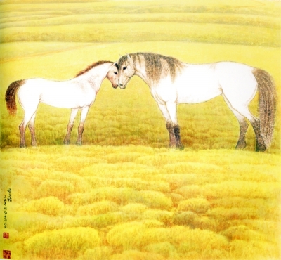 艺术的最高境界是真善美,让人动心,让人民的灵魂经受洗礼。品赏胡勃的作品,沁人心脾的清新健雅之风扑面而来。胡勃曾说:“画马则是在与马对话,与自然对话,也是与自己对话。平生最快乐的事是画画,唯一能主宰的事是坚守自己,在作品中注入真感情。”胡勃正是坚持着求真求实的理想与信念,谱写了一首首鞍马的艺术颂歌。