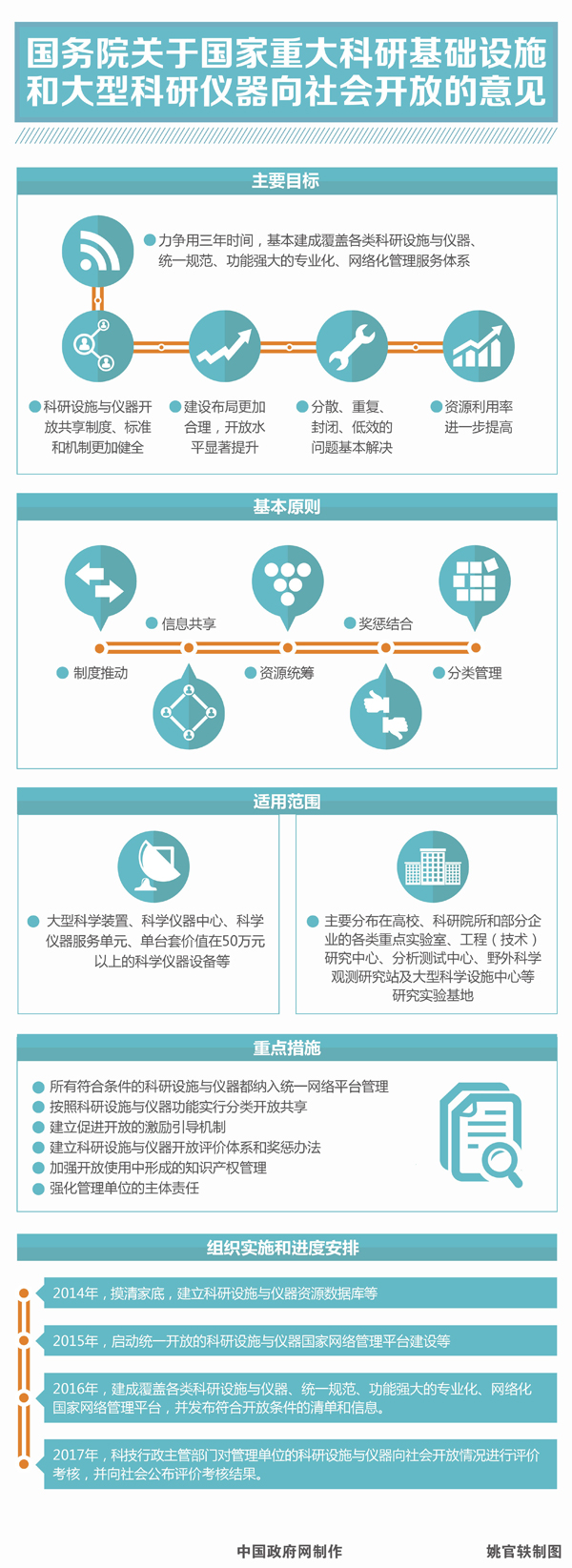 国务院印发《关于国家重大科研基础设施和大型科研仪器向社会开放的意见》