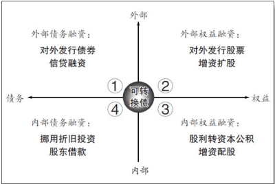 若以融资风险为标准,图中优选原则应该是先股后债,先外后内,顺序是②、①、③、④象限。第②象限增资扩股,企业吸收的外部股东越多,抗风险的能力越强;第四象限的内部债务融资,企业自身的风险和负担增加。