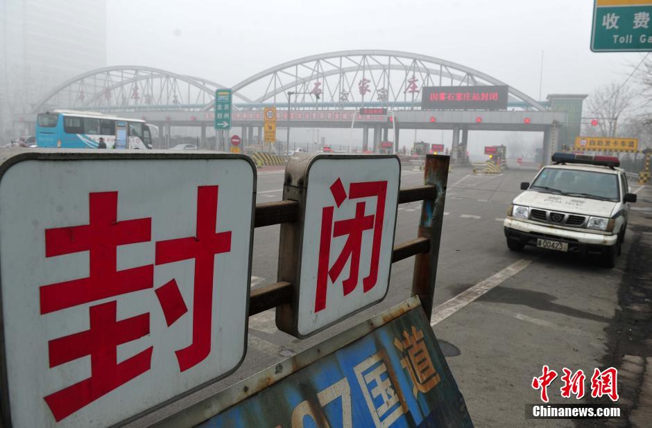 1月26日,河北石家庄京港澳裕华路高速口,依然处于封闭状态。继24日、25日河北省气象台连续发布大雾黄色预警信号之后,今日河北多地再次遭遇大雾,对当地交通造成影响。北京以南所有高速因雾关闭沿线站口,石家庄机场进出港航班全部处于延误状态。据河北高速交警总队透露,自25日晚8时开始,北京以南所有高速因雾关闭沿线站口,省会石家庄市区所有高速口关闭,秦皇岛、唐山辖区所有高速因雾关闭,张家口辖区因雾关闭张石高速蔚县段、张涿高速、宣大高速。 中新社发 翟羽佳 摄