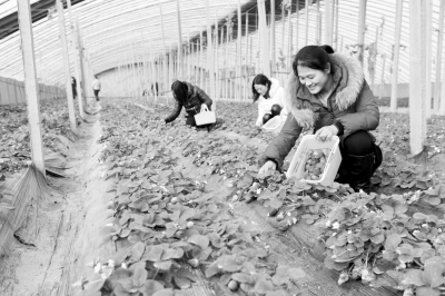 1月24日,孟州市会昌街道南关村弘鑫农业观光园内游客在采摘草莓。近年来,随着河南省孟州市农业观光采摘游的兴起,农民尝到了发展观光农业的甜头,吸引游客前来采摘的同时,实现了农产品就地升值。赵春营赵晓杰摄