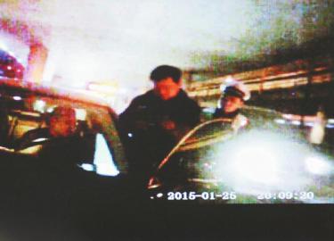 25日,一涉嫌酒驾司机企图不下车拒绝酒精测试。(记录仪画面)
