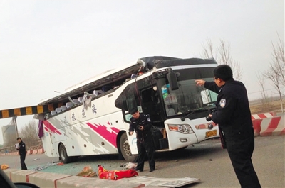 大巴撞限高杆两人亡