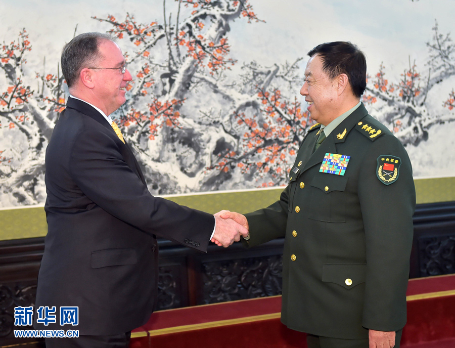 1月28日,中央军委副主席范长龙在北京八一大楼会见美国国防部副部长维克斯。 新华社记者李涛摄
