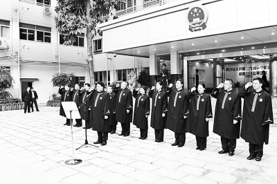 “我是中华人民共和国法官,我宣誓:忠于祖国,忠于人民,忠于宪法和法律……公正司法,廉洁司法,为民司法,为维护社会公平正义而奋斗。”1月28日上午9时许,最高人民法院第一巡回法庭庭长刘贵祥带领巡回法庭法官面向国旗,庄严宣誓。