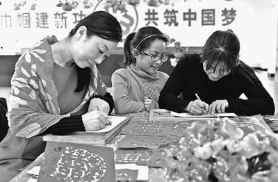 29日,黑龙江伊春市红星区的妇女正在精心制作剪纸作品。红星区努力挖掘地方文化特色新产品,培养“巧女”骨干队伍,重点扶持和带动留守妇女、下岗失业妇女、残疾妇女等困难妇女群体依靠自己“巧手兴家”。春节前夕,由她们制作的剪纸等手工艺品成了当地市场上的俏货。