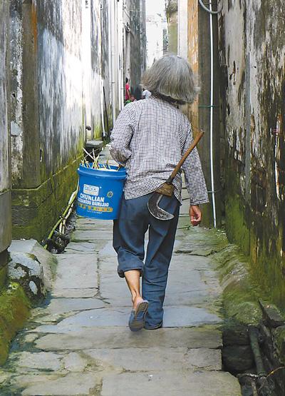 古村旧巷老人家。本报记者 王斌来摄于江西婺源汪口村