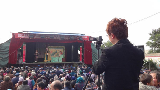 摄像机镜头越过攒动的人群,对着临时搭建的戏台,台上唱的是显得有些苍凉的戏文,“七星灯惚惚晃晃,五丈原凄凄凉凉”(越调《尽瘁祁山》唱词),显示屏上是身着八卦衣,手执羽扇的诸葛亮,显示屏外是一个身穿黑色夹克的青年人。他扶了扶镜架,语气低沉,“这块电池又要没电了”,弯下腰去包里翻找。这个人就是郭庆璋,从2007年到2014年,他的业余时间大都是在各种显示屏前度过的,义务拍摄的摄像显示屏,联系沟通的手机显示屏,剪接音频、编辑网站的电脑显示屏,中国越调网上8000G资料的背后,都是郭庆璋的背影。