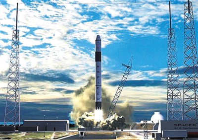 美国太空探索技术公司(Space X)近日发射的“猎鹰”9号火箭。