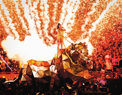 第49届NFL超级碗总决赛昨日在美国亚利桑那州格伦代尔凤凰城大学体育场举行。美联(AFC)冠军新英格兰爱国者最终以28-24赢了国联(NFC)冠军西雅图海鹰,夺得桂冠。而在这项一年一度的“美国春碗”中场秀时段,则由歌手凯蒂·佩里(Katy Perry)坐镇。四次神速换装,九首冠军单曲,水果姐姐气场全开,贡献了一场极具视觉冲击且有惊无险的表演。这一次,我们不去做她与前辈麦当娜、碧昂斯的专业比较,而关心一下这场热闹前后,那些无厘头的周边。