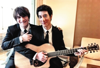 王宏恩在台湾乐团起伏十几年,与圈中诸多艺人皆为好友,(左图)为与王力宏合影。